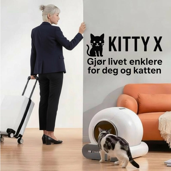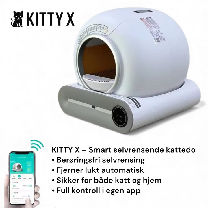 KITTY X er en avansert, selvrensende kattedo utviklet for moderne norske hjem. Med automatisk rengjøring, luktsikret konstruksjon og appstyring gir den både deg og katten et renere, mer hygienisk og enklere hverdagsliv.