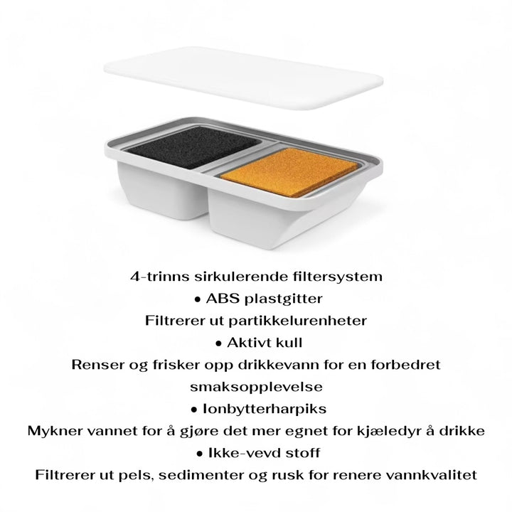 Gi kjæledyret ditt tilgang til rent og friskt vann hver dag med dette effektive filteret til vannfontene! Her får du ett dobbeltkammerfilter som kombinerer mekanisk filtrering og aktivt karbon for optimal vannkvalitet.