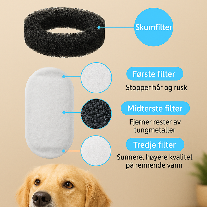 Karbonfilteret fjerner lukt, smak og tungmetaller, mens forfilteret stopper hår, rusk og smuss. Resultatet er klart og friskt vann som frister kjæledyret ditt til å drikke mer.