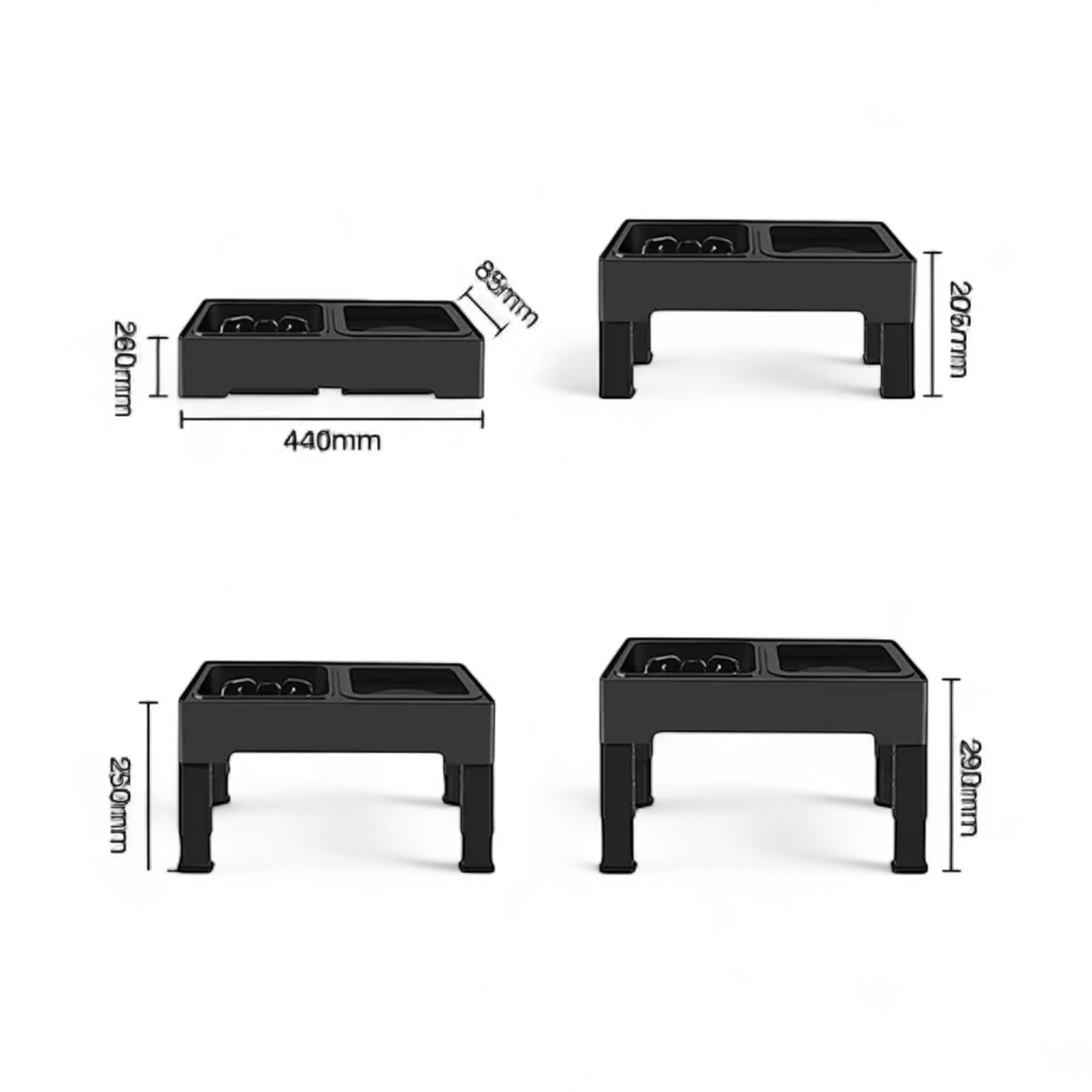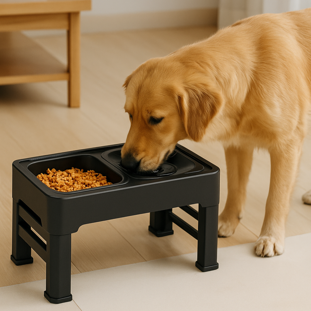 Med justerbar høyde, slow feeder matskål og lekkasjesikker vannskål er dette løsningen som kombinerer komfort, hygiene og helse – fra valp til voksen hund.
