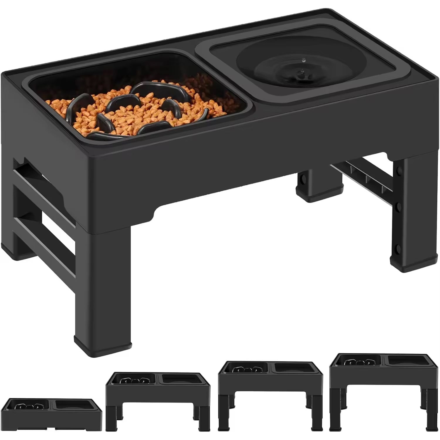 Hevet hundebar med justerbar høyde – slow feeder & anti-søl vannskål