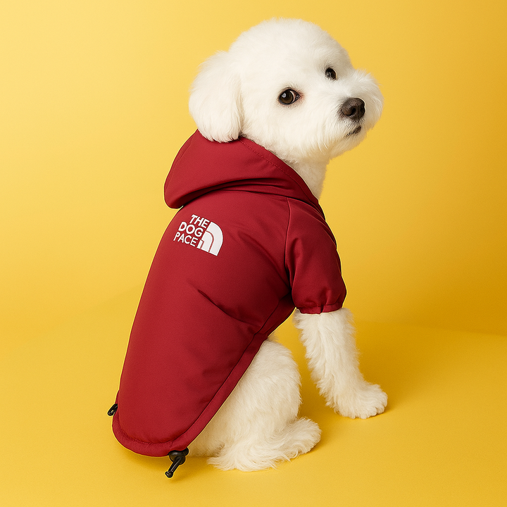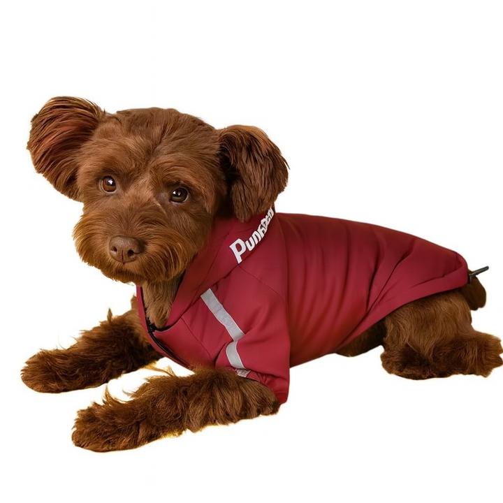 Hundejakke – Vanntett med fleece & hette (rød / sort)