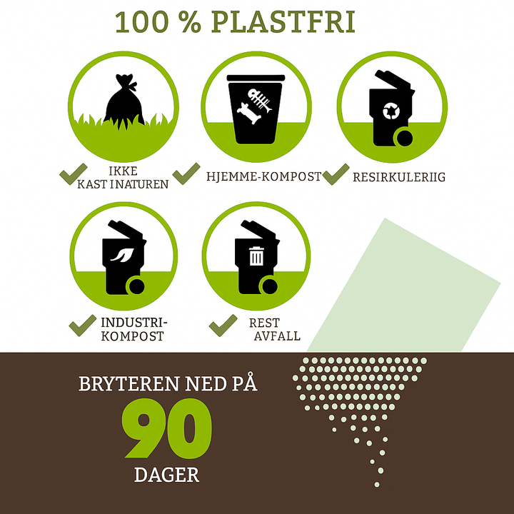 ♻️ Merk: Posene er nedbrytbare, men skal likevel kastes i restavfall. De er ikke beregnet for kompostering eller naturen.