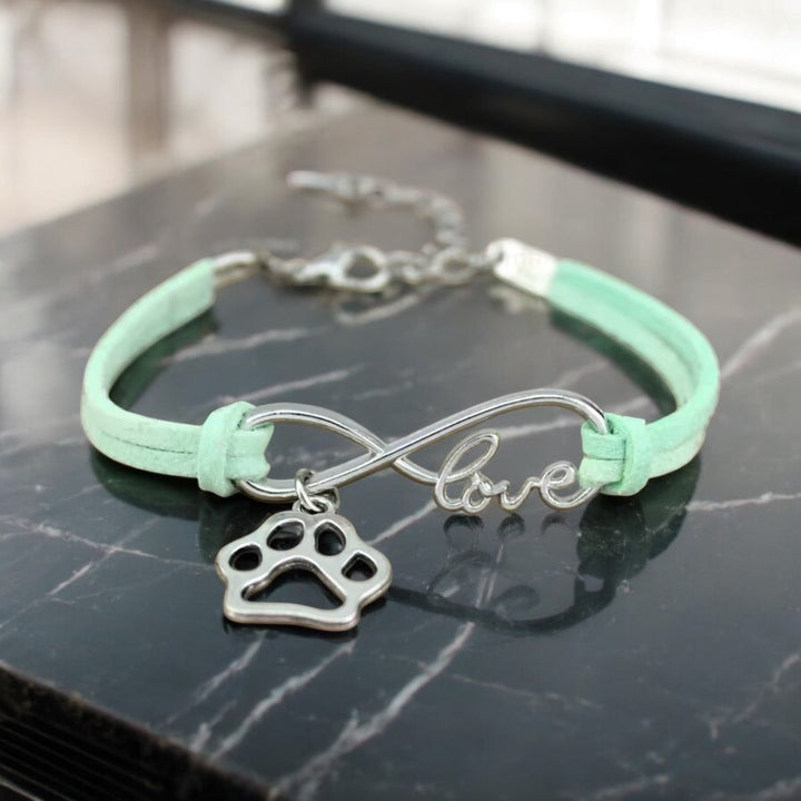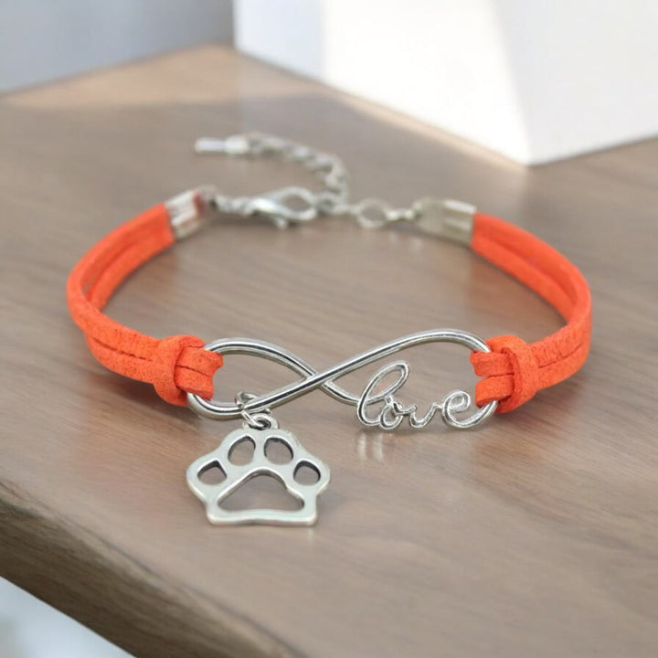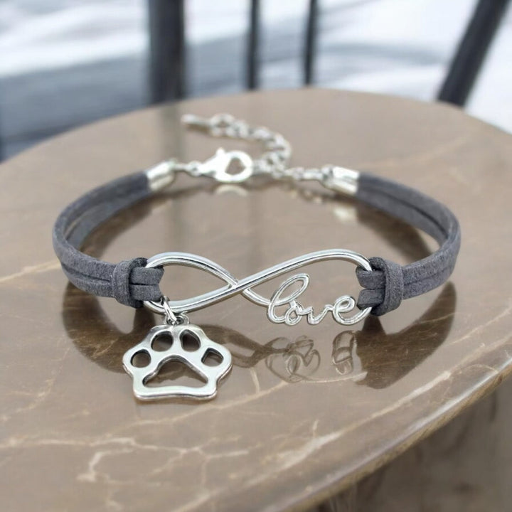 Med et uendelighetssymbol formet i metall, prydet med teksten “Love” og et søtt poteanheng, uttrykker dette armbåndet den uendelige kjærligheten mellom deg og ditt kjæledyr.