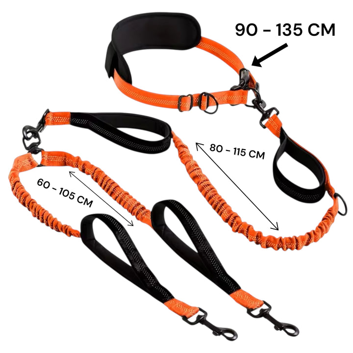 Løpebelte med dobbel støtdempende hundeline – for to hunder