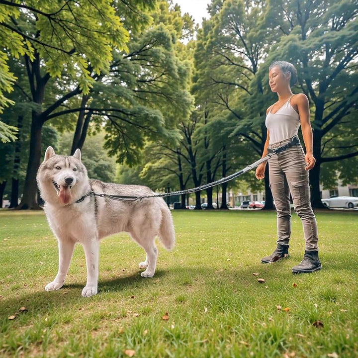 Dette løpebeltet med elastisk hundeline er utviklet for deg som ønsker en mer komfortabel og effektiv måte å jogge eller gå tur med hunden på. Den støtdempende strikkdelen reduserer rykk og gir en jevnere opplevelse for både hund og eier. Produktet passer like godt til daglige turer som til løpetrening.