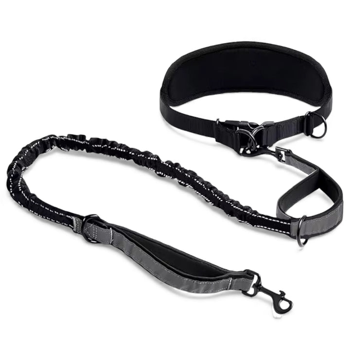 Støtdempende løpebelte med elastisk hundeline som reduserer rykk og gir bedre kontroll på tur og løpetur. Justerbart belte med god korsryggstøtte, refleksdetaljer og slitesterkt design.