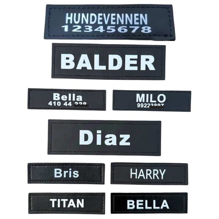 Personlige navnemerker til hundesele – Enkelt festet med borrelås