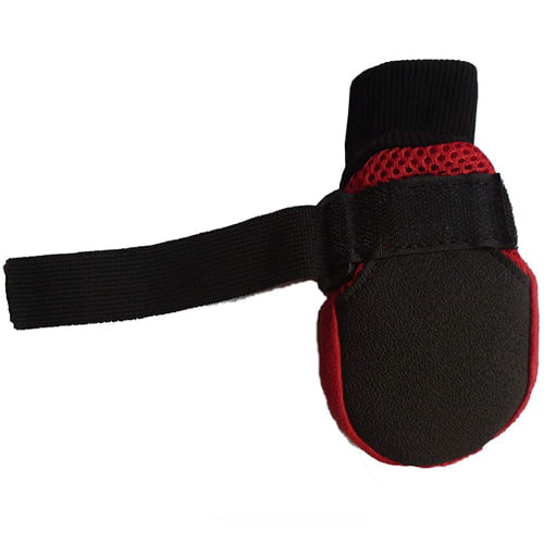De er enkle å ta av og på med elastisk ribbekant og borrelåsstropp som sikrer at de sitter godt – også på aktive hunder. Sokkene leveres i pakke med 4 stk og passer godt for mellomstore og store hunder.