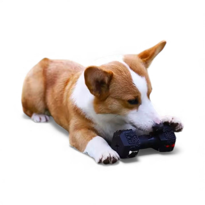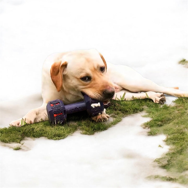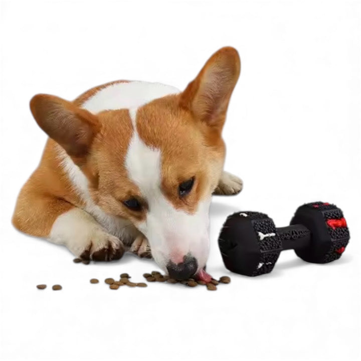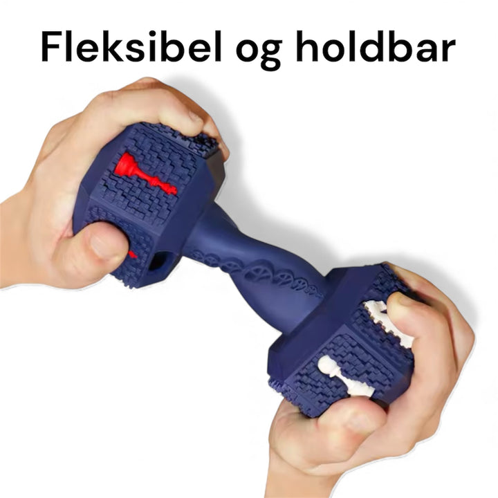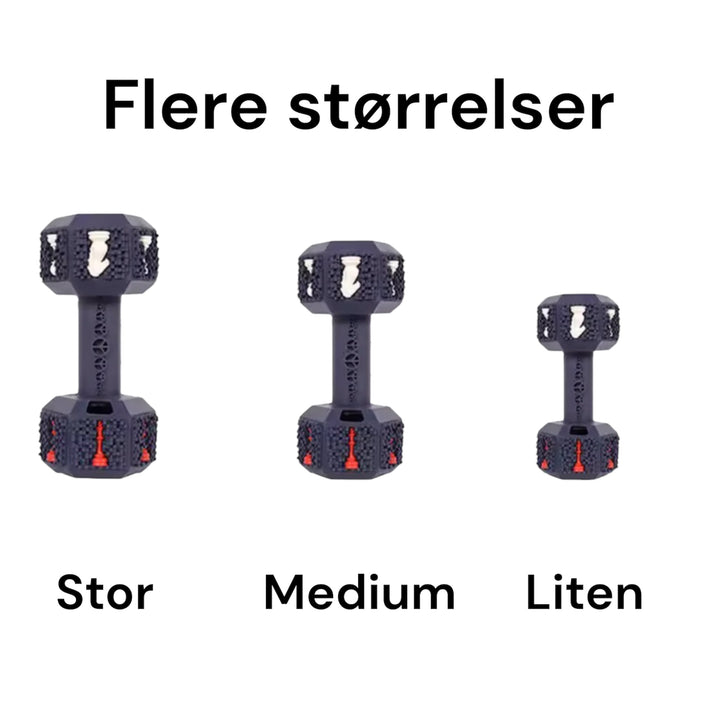 Denne hundeleken er utformet som en vektstang og har 3D-struktur på endene som masserer tannkjøttet og bidrar til bedre tannhelse. Den har hulrom i begge ender hvor du kan fylle inn godbiter, peanøttsmør eller tørrfôr. Dette gjør den til en utmerket belønningsleke og motivator for aktiv lek!