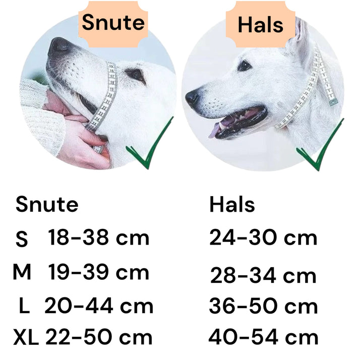 Vår snutesele er laget i mykt, men slitesterkt materiale som former seg skånsomt rundt snuten og forhindrer gnagsår. Den er justerbar og passer hunder i alle størrelser og raser. Perfekt for deg som ønsker en trygg, stressfri løsning under turer i trafikkerte områder eller ved møte med andre hunder.