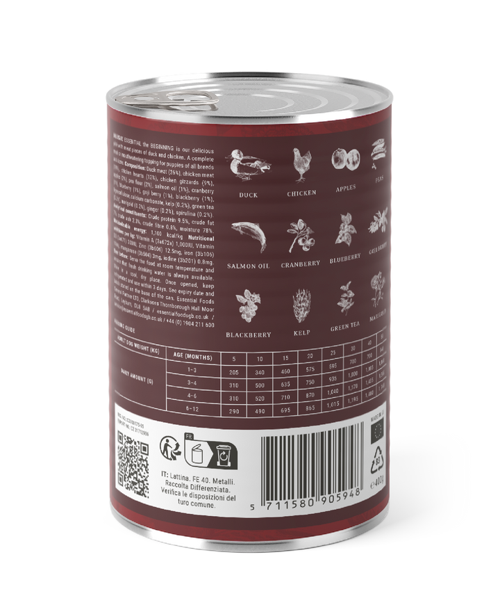 The Beginning Pâté er en næringsrik og smakfull våtpâté utviklet spesielt for valper av alle raser. Denne kornfrie oppskriften inneholder saftige biter av and og kylling, som gir et ekstra smaksløft valper elsker. Kan benyttes som fullverdig måltid eller som smakfull topping på tørrfôr.