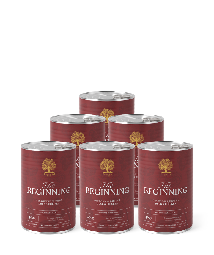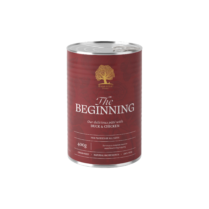 The Beginning Pâté er det perfekte valget for eiere som ønsker et velsmakende, næringstett og kornfritt støttemåltid til valper.